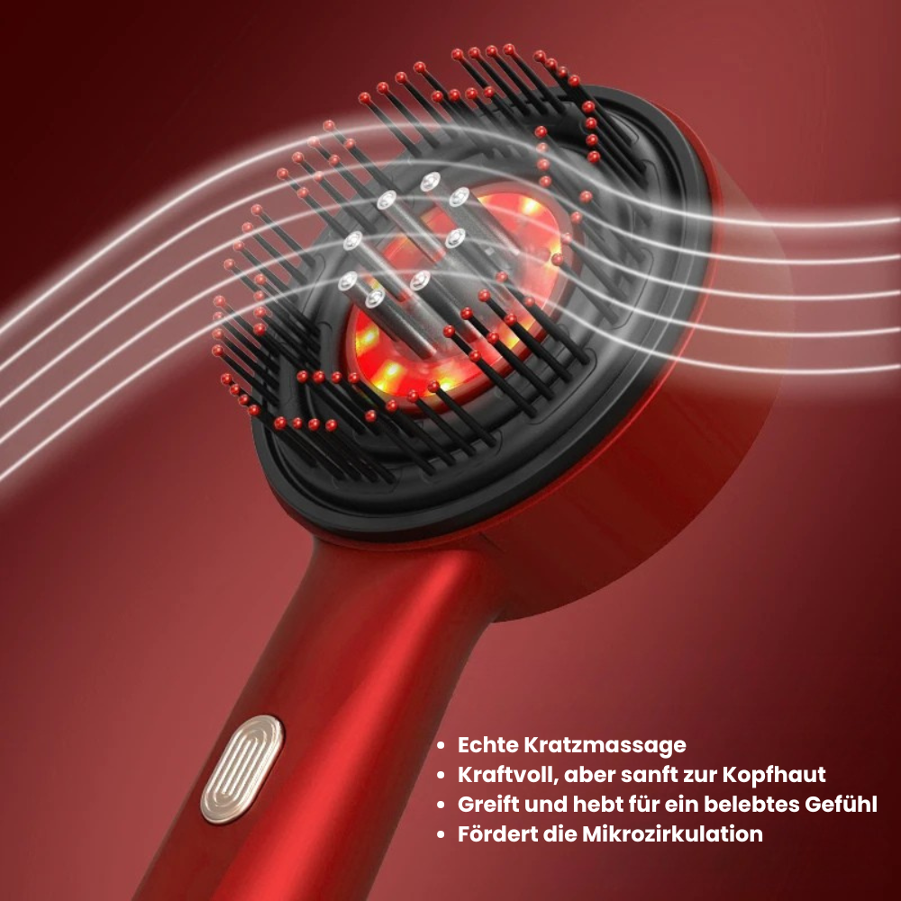 Das integrierte Rotlicht aktiviert die Kopfhaut und fördert die Durchblutung der Haarfollikel. So werden natürliche Wachstumsprozesse unterstützt, genau dort, wo Haarausfall entsteht.